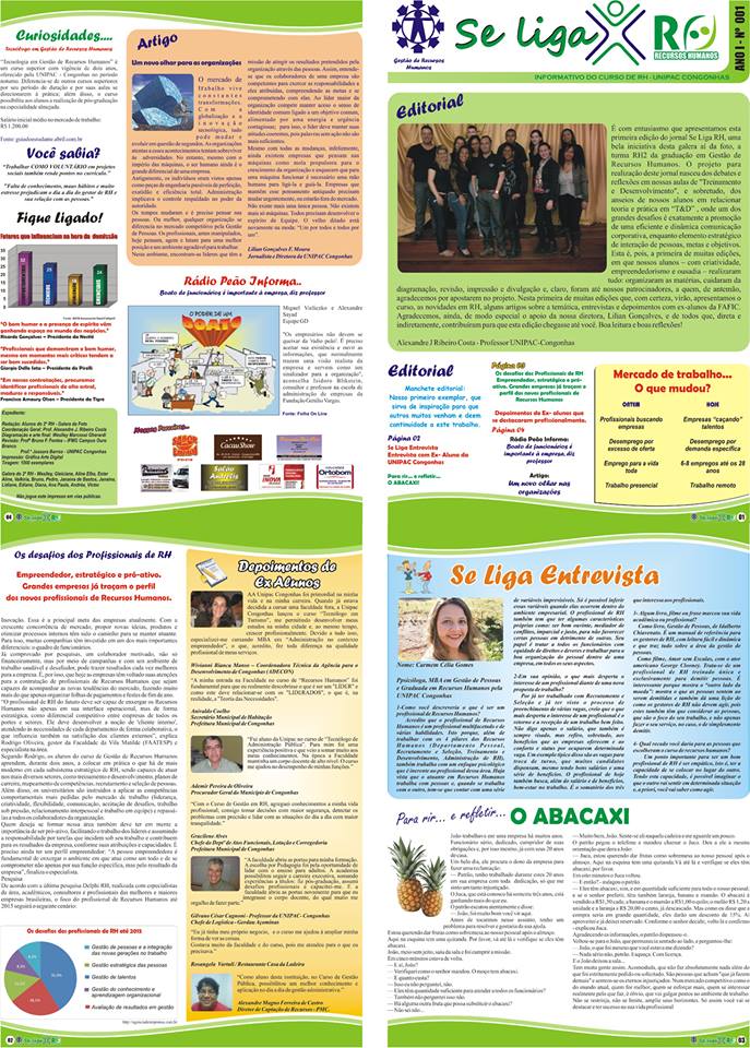 ALUNOS DO CURSO DE GESTÃO EM RECURSOS HUMANOS LANÇAM A 1a. EDIÇÃO DO JORNAL "SE LIGA"